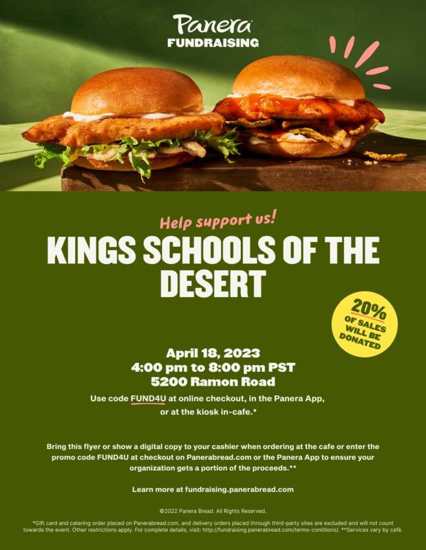 - PANERA BREAD FAMILY NIGHT OUT: 4:00pm - 8:00pm. 5200 Ramon Rd. Palm Springs. Flyer attached below.