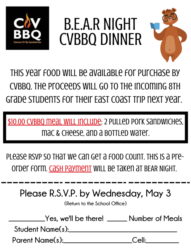 - BEAR NIGHT CVBBQ RSVP DUE! See form attached below.