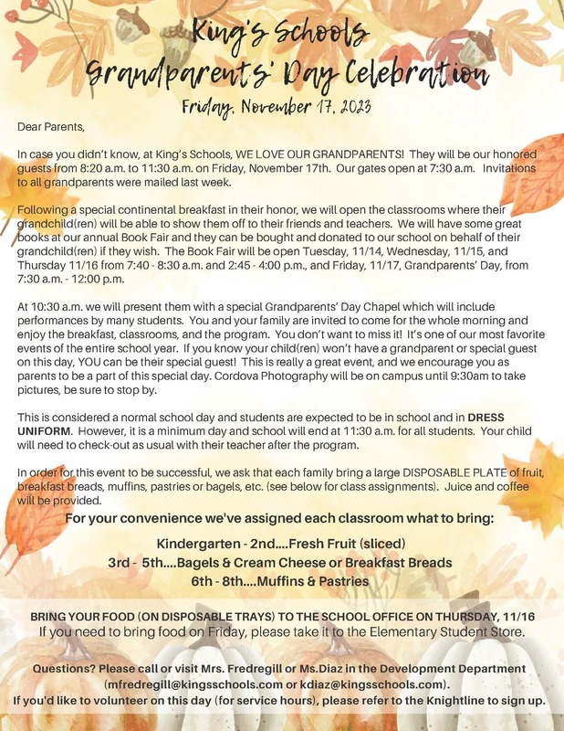 - GRANDPARENTS' DAY - SAVE THE DATE!: Friday, November 17. See flyer attached below.