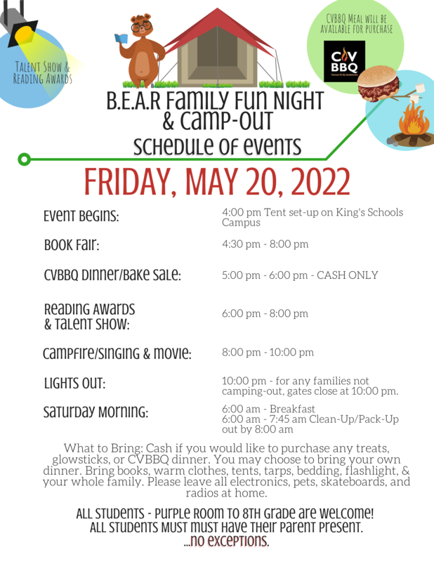 - B.E.A.R. (Be Excited About Reading) NIGHT CAMP OUT & TALENT SHOW: Please See flyers attached for more information.